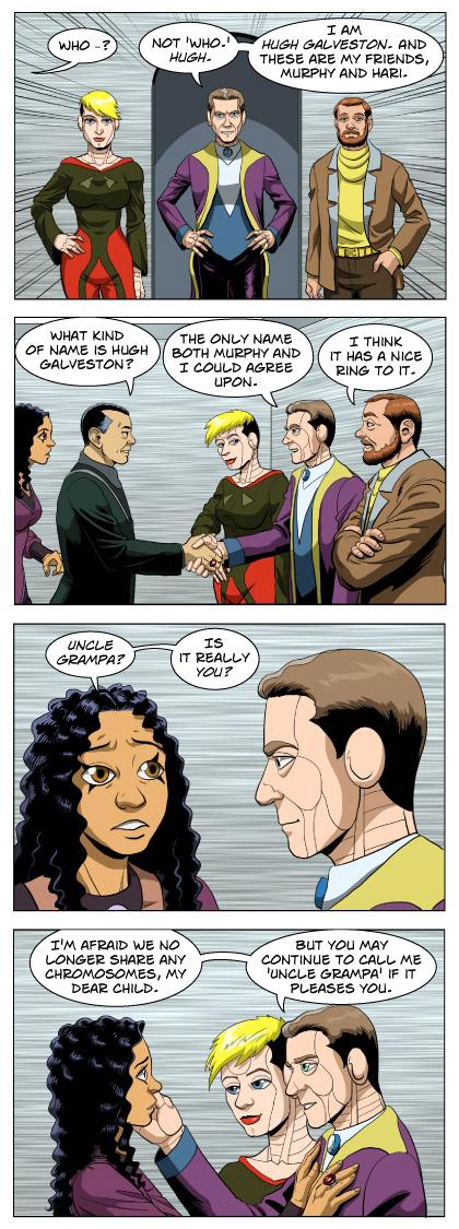 Hugh: I'm afraid we no longer share any chromosomes, my dear child.