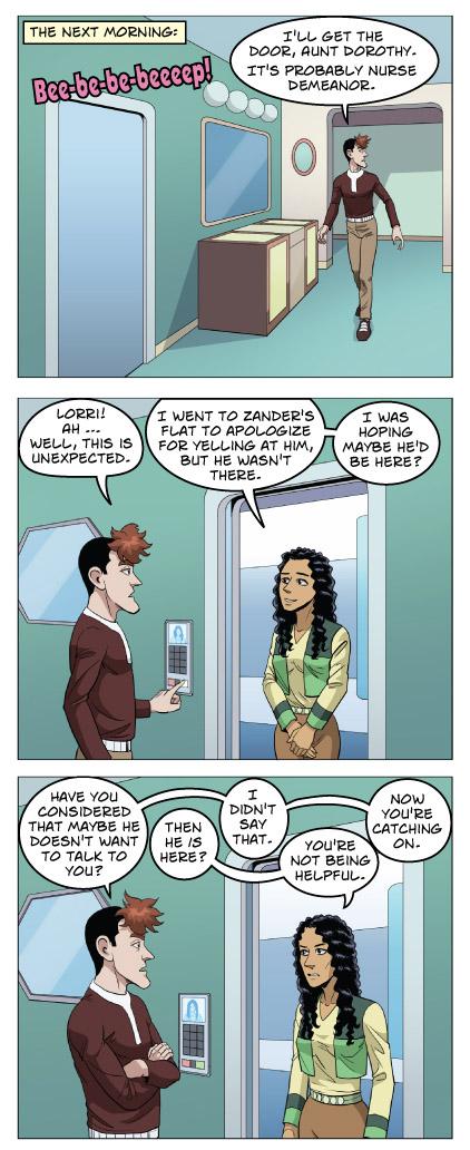 Lorri: I went to Zander's flat to apologize for yelling at him, but he wasn't there.