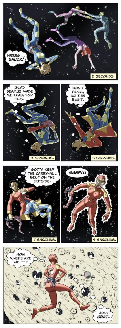 Re-establish the scene – the Scoobies have been shot into space, sans spacesuits.